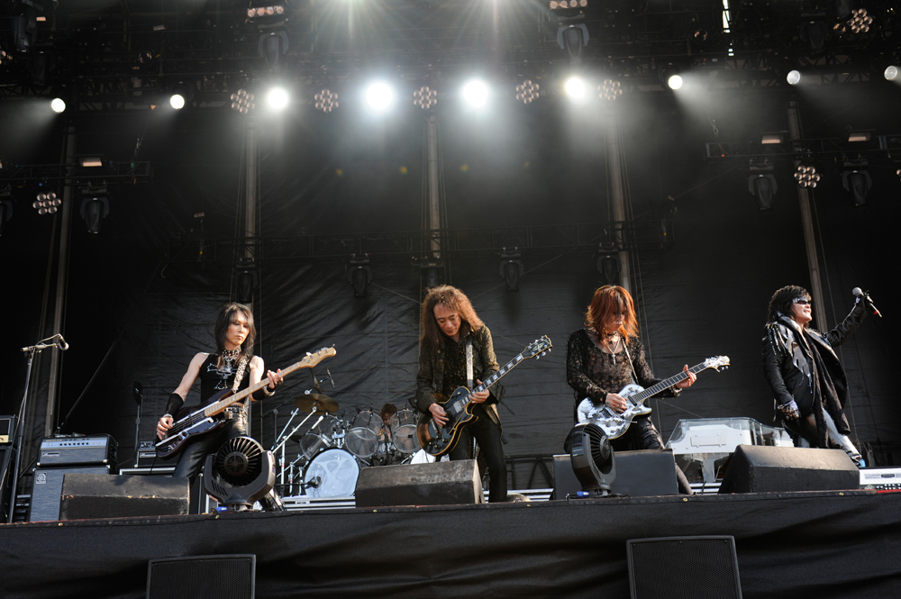 The band is X Japan, the biggest rock band in Japanese history. The quintet came together in 1982 (originally called just X, but John Doe had something to say about it), disbanded in 1997 and re-formed in 2007. They started as a speed metal band with delusions of grandeur and evolved into a power-ballad powerhouse. Their shows are equal parts Anthrax and Celine Dion.