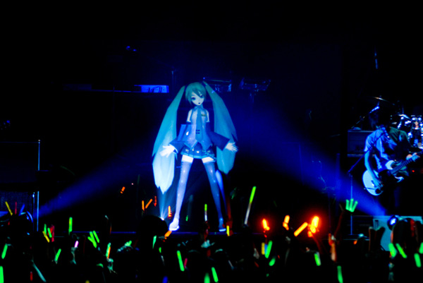 2009/10/17 Category : MUSIC 科学の限界を超えて私は来たんだ ボカロの世界はちょっと目を逸らすとあっという間に進化します。技術の進歩と、ボカロ世界の進化は比例。そこに、絵師やコンポーザー、動画職人や生身の「歌ってみた」によるとてつもないクリエイター達が加わると、一気に未来がやってきます。そんなわけで8/30に行われたミクフェス。今年のアニサマではステージ上のプロジェクターに大写し。よーするにミク版FILM GIG状態でしたが…ミクフェスはとんでもないことになっていました。【ニコニコ動画】【ミクFES'09(夏)】メルトすごすぎます。原理は、たぶんそう難しくないのです。透過スクリーンに予め作ったミクのCG映像を投影するだけです。その「透過スクリーン」こそが発想の勝利。バックのミュージシャン達がきちんと見えることによって、本当にミクがそこに「居る」気にさせる、この臨場感。とてつもないヴァーチャル・アイドル。最後に観客に手を振るトコなんかなんかもう涙出てきたよ(笑)?つべに外国の方からのコメントで「未来がここにあった!!」「ここに居たかった…」などなどのコメントが…ですよねえ…(笑)。日本はじまりすぎ。未来が時空超えてやってきちゃったぐらい、とてつもない。