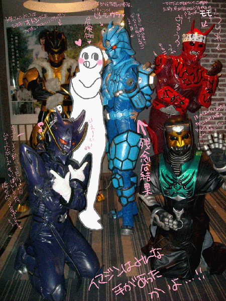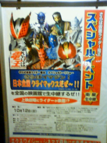 2008/10/13 Category : DIARY でんおうFILM GIG(笑) さてイベントこちらは中継会場SOGAでございます。しかしすごいですね…イベントの生中継って…。特に有名なアーティストとかでもない、とある特撮ヒーローもののイベントでしょ。なんというか、前人未到で前代未聞のクライマックスだね。●おわたすごかった。残念ながらどうすごかったのか、詳しく書いてる時間がございません。なので本当にココだけは!という部分のみ ろっどふぉーむ♪