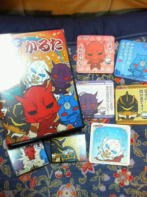 2008/01/23 Category : DIARY カルタ かわいいいいいいい。かわゆすぎてしぬううううう。予約しに行ったら「もうお渡しできますけどどうしますか?」ってきかれたのでお買い上げしますた。フェア中だったのでコースターもついてきた♪しかしあれだな~。メイト店内に特撮作品の映像が流れる不思議…クライマックスですな(何でもクライマックスって言えばいいと思ってるww)このメーカーさんのCD付きカルタって恒例なんすけど、それって声優ファン向けだったりしてましたよね。まあこれも確かにそっち向いてるんですが、なんつうか子供向け特撮作品で声優フリトを聞くのがすごく 変な感じです…。ほらドラマCD聞いたあとに入ってるコメントのノリでわりと喋ってるし あーなんか変な感覚wwあとtshkさんとtrsmさんは笑いすぎなんじゃwww鈴かっとばしてんなーwwゆさはいちいちどエス撒き散らすなっつーのwwwこっそり桃。コソーリするなら今のうちwコソーリ…イージャソスゲージャソする…wwああああああああああ。かわゆうううううううう。tkrが冷蔵庫にふたつ貼り付けてその間に挟まってたりしてたな(最高カワユス)早いトコこれ金浦龍も出してくれんかのう。これ、缶コーヒーとかに巻いてもいいよね答えh おっとww桃を巻いた缶コーヒーとかいつもよりすっげぇ美味いんだぜ!あーーこんなカワユスを生んでくれたyskにゃんありがとうまじありがとう。