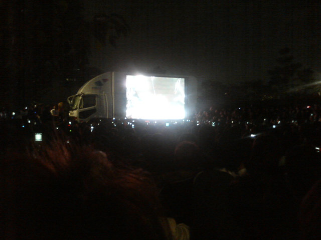 2007/10/26 Category : MUSIC 涙に溶ける青い血を さて。22日のことを。おそろしく長いうえに何回かに分けるので、あの、興味ない方はこのままブラウザを閉じるなどなさってください。本当に自分用なので(汗)。●ぎりぎりまで修羅場り16時すぎに家を出る。この時点で今だにお台場のどこで中継されるか発表なし。わかっているのは撮影場所と撮影開始時間のみ。現地ファンも未だアクアシティ近辺でうろうろするしかない状況。●16時45分よしきもばからメルマガにて「お台場海浜公園にて」と発表!会場ktkr!その時遅いお昼を地元でとっておりました(笑)。●気もそぞろでお台場へ。ゆりかもめ車内から、屋上からサーチライトがいくつも交差しているビルを発見。あれか。●到着。アクアシティビルを目の前に、ここに四人(+一人)が今居るのかと思うと胸がいっぱいに…。●件の駐車場へ。思ってたよりも人が少なくいささか不安に(汗)。●狭いんですよ駐車場。駐車場の真ん中に生け垣があり段差になっています。一段下がった海側とアクアシティ側に別れる感じ。そのどちら側にもサイドにスクリーンを搭載した大型トラックが待機しています。私はアクア側でひとまず待機。●時間つぶしに来る途中小説を買ったんですが、駐車場から向かいのアクアシティを眺めるだけで十分待てました。みんな、屋上からのサーチライトをじっと見て思いを馳せつつ、まったり談笑したり。●あの頃のファンが多いんだろうけど、みんなもういい年なので(笑)特に混乱することもなく騒ぐこともなく、本当にまったりで(笑)。興奮を胸に、おさえつつ待機。十年待たされたとは思えない落ち着きぶり(笑)。やっぱりね、大人になったもんね(笑)。しみじみ。いやあXの現場でこういう空気味わえるとはね(笑)。新鮮(笑)。●いきなり海側のファン達から歓声が。どうやらYOSHIKIが屋上からファンに手を振った模様。こちらでは手前すぎてメンバー見えず(笑)。やっちゃった(笑)。●その後二回ほど同じことが!四人全員見えた時はもう、なんて言ったらいいか…(泣)。本当にこんな近くでXのメンバーを見るなんて…十数年ぶり(泣)。●テストも兼ねてか、撮影開始時刻前にリハ。スクリーンも解禁となりここでそのリハらしき模様が生中継!ファンが立ち上がって前方に詰めだす。しかしどうにも人のアタマで見えないので海側へ。もーこれが大成功!モニターからせいぜい5、6メートルくらいのところで視界良好、スペース良好な場所をゲット!●メイクされるひーちゃんの後ろ姿が!髪型がU良と同じなのは何の偶然だい?ロックの神様(汗)。●でえええええ。ひーすかっこえええひーすかっこえええひーすかっこえええ(驚愕)。な に が お き て る。まるでHIDEちゃんの分までビジュアルを担当するかのように華やかな黒王子っぷり…!ま ぶ し す ぎ る。●TOSHIwwwwwwwサングラスにロングコートwwwwww笑いが起きてるwwwwでやまwwwww●先生!石塚先生!素敵です!素敵すぎます(泣)!●よおおしぎいいいいい(泣)。かわゆううううう(泣)。首輪がいささかわんこっぼくてちょっと背徳のビーナス的な気持ちになる(爆)●そんなメイク風景だけちょろっと見せ、もにた暗転。ほーい。●アクア側前方で何かあった模様。どうやら先程の中継の際急に立ち上がったりしたことでトラブルがあったらしい。ファンのヒステリックな叫び声が聞こえます。●アクア側、前方のファンが「座ってくださーい!」と必死の呼び掛け(警備員とか居ないんだぜ(汗)。みんな従います。海側でも同じことが以下同文。●しばらくしてなんと救急車が…!皆まさか?と緊張が走る。しかしまさかの通りで救急車は駐車場で停車!えええええ(汗)。どよめく現場。すわ中止か!?●救急車撤退後、更に先程のファンから決して立ち上がらずマナーを守って的な呼び掛け。メンバーを悲しませないで的なアナウンス。ファンは皆、「はーい」とよいお返事(笑)。●そこまでならよかったんだけどその後気合い入れが…(汗)。●わあ なんか あの その 気持ちはとってもわかるんだけど今はやめとけぇってか恥ずかしいからやめてくれえぇ。という気持ちの人たちが大多数らしく周りから失笑といたたまれなさをこめたため息やら何やらが…。●「わ、わかいねー(汗)」「やりたいんだよねっ(汗)」との言葉あちこちで交わされる。ほんとにそうですねー。●ぎゃあああ合唱始まったああああ(汗)。ひいいいい。またまたニガワラの場内。●気合い入れるのはいーがその気合い、今は胸にしまっとけ(泣)!●面白いのが、海側とアクア側では「ビルから離れてるけどモニタ見えるし問題なくね?」なまったり大人ファンと、「少しでもメンバーの近くに居たい!」な運命共同体したい年頃ファンになんとなく別れてるらしく。なので海側が大変心地よい(笑)。少し気合い入れとかあったけど「やりたいやつがやればー?」な自由参加な雰囲気だし。それでいいんだぜ(笑)。●屋上から音が漏れ聞こえてきました。写らないモニタに疑問を持