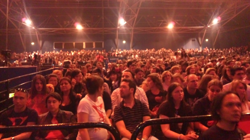 …というリアクションをわざととってみたり…(笑)。日本人、感じわる!みたいな…ww まあほどほどに列が相変わらず「We are X!!We are X!!We are X!!」と気合の入ったコール鳴り止まぬ中、会場にある程度吸い込まれていくのを見届けぼちぼち行きますかと、列終わりに並び始める。 中に入り某Yちゃんの生着替えwをお手伝いしつついざフロアへ!!おおーーこんななってんだ!あ、スタンドってコレかあ!! これは見やすくていいねーしかしぎっしり入ってんじゃないのちょっとー(泣)と胸熱になる。