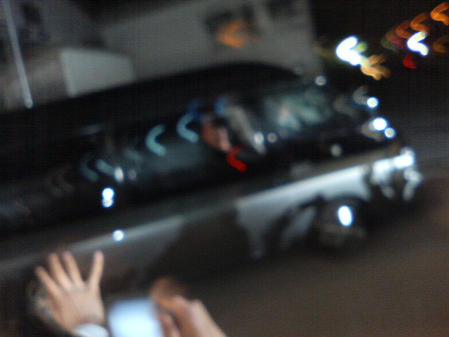 2007/03/09 Category : MUSIC あらびゅー! ごっつぼやけてますが、彼です(号泣)。色々な想いが渦巻いてなんだかよくわからないのですが、確かに目の前に彼は居て、大変ご機嫌で、そしていつもの「らぶゆーおーる」があって。うーん…ほんとにわからない。たぶんこれが正真正銘、パフォーマンスだったら私は真っ白になっていたと思う。でもそうじゃなくて、散々待たされて出てきたと思ったらスピーチも短いし、絵は残念ながら入賞ならずだったし(笑)。入賞者にジェラったらだめよ~とポジ社長は言ったが、そりゃあんた、無理だ(笑)。そりゃな…多少はあるし(特に今回、クオリティはとにかく一切自分に妥協を許さなかったていうものあって。)、でも同時に心の底から「おめでとう!!!!」っていう気持ちもある。マイケルファンって不思議なもので、ファンの誰かがマイケルと触れ合えると、知り合いでもないのに自分の事のように嬉しいんです。「良かったね!!」とか「倒れるなよ!!まだ倒れるなよ!!」とか(笑)。世界中のファンがそんな感じで。何なんだろうなーあれなー。だから…やっぱりよくわからない。終わってからずっと考えてるんだけど、もう考えないことにした(笑)。わからんでいいやとwwイベント自体はお世辞にも「楽しかった!!」といえる物ではなく(ありゃ構成があかん。)、それでも人の波に押し流されそうになりながら、なんとか最前で姿を拝めたこと。うん。 「うん」て(笑)そうそう、コンテストは本当は最初は3人までという予定だったのですが、あまりの応募の数に(やっぱりねw)「この中から3人なんて絶対無理!11人にするよ!」つって引き上げwwらしすぎwwしかも食事会は「せっかくだから、ランチじゃなくってカッコよくディナーにしよう!明日の夜だよ☆」どんだけご機嫌かとwwwwつか、よくよく考えたらこの企画自体がMJの芸能活動の中で初。このキャリアで初ってのが、また彼の人間味を感じます。愛。イベ終了後(「本日のイベントは全て終了しました」という挨拶もなし。わからんわ!!)、全然時間あったんで、出待ちしてみたwwそれほど待たずに御大来まして、撮ったのがアレ↑です。ファンに応えるために速度をゆっくりにして、窓を開けて笑顔で手を振ってた。見えなくなるまで見送って会場を後に。撮った写真を感慨深く見てると大阪からやってきたというマイコーファンのおばさまに声をかけられる。「撮れたの?良かったわねえ」ここで初めて涙が出た。