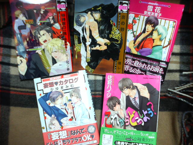 2007/03/12 Category : BOOK 読みまくる。 週末にこれと、「地球へ…」全3巻と、リチャード×李悠シリーズ最新刊と「美剣士」-----うむ、土日で10冊。<あほ。ていうか、9割BL(笑)、ってとこに「ああ私疲れてるんだな」「癒しを求めてるんだな」と(笑)。写真のやつなんて、イロモノ大集合みたいな(笑)。「炎の砂」なんて「こ…っ、これがBLハーレクイーン(笑)!!!」と笑いが止まりませんでしたwwwwいやーアラブものってどんだけ凄い(いろんな意味で)んだろうと思って。「妄想~」は付き合ってるカップルが、えちもしてないのにお互い妄想だけは激しいというまたイロモノな内容。なんか男性向けのノリだった。「らめぇ…っ!」って、狙ってやってんのかwwwハイジさん。うん。 まああの、なんだ。まあ…BLだからいいかな。同人誌だったら好きな作家さんなんだろうけど、「商業誌」って考えると、うーーーーん。「仲神家~」これが2巻だと知らないで買ったwwwwてかBL要素少なスww。普通に電車でも読めるwwていうかBLじゃなくていいとwwあ、さすがにカバーはかけてね。ただ買った本の中で一番絵が安定していて読みやすかったですね。「雪花」時代物とかリーマンとかバラエティに富んでますた。リチャード×李悠はシリーズ中一番の激甘で、おねーさんびっくり。李悠がピュアだからか…このシリーズ大好きなのでまだまだ続いて欲しい♪日曜日に友とティータイム。お紅茶は、薔薇の花びらが浮かんでおります。でも凄い飲みやすくて、かつ薔薇の香りがすごくいい香りで、量が多いんだけど砂糖1粒で十分な美味しさで。薔薇紅茶っつったら、飲まないわけにいかねーべ。NINASに行っても、ベルサイユローズをつい頼んでしまうし(笑)。でもタルトはイマひとつ。プディング部分の味が中途半端って言うか…もっとカスタードの味がすれば美味しいのかな。今度はランチだー。マイコーは調子悪くて今日は出かけてないらしい。座間に行く途中のヘリが寒くてそれで体調悪くしたとか。治るまでもちょっと日本居たらええよ。 PR