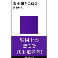 2006/12/14 Category : DIARY 「どちらかというと、B/Lよ」 今週の、某亀有にものもーす!「どちらかというと、BLよ」「BLね!」ボ ー イ ズ ラ ブってルビをふるな(泣)。つかあの二人だったらびーえるじゃなくて、さ●とか薔×族だ!!ていうか、ざんぷ本誌に載ってはいけない言葉が…。しかもこの度連載30周年を迎えた国民的コミックスが…。嗚呼、これも時代なのかしら…。今更な嘆きかしら…。ほんとーに、ほっといてほしいんだけど。BL新日本史 「日本の歴史はホモが動かしていた」これこそ超今更だなあ。兄弟の契りって、マジ契りですよ?所謂フィジカルに契りですよ?つかこれは敢えてBLとしての書籍だけど、マジに専門書ありますよ既に。ざん!←SEうむ、なんと潔い帯だ。ざっとですが読んだ事あるんです。中々面白かったですよ。入門的で。著者は性風俗で色々執筆されてますし、やっぱり専門的ですね。でもやっぱり有名なのは井原西鶴の男色大鑑、ですかねー。一度読んでみたいんですけど。つーか、なんかこうまではっきりと「男同士の恋こそ武士道の華!」って宣言されちゃうとかえってうらやましくなってくる。タブーとか関係なく、恋を謳歌してたんだなあって。なんかいいじゃんね?おおらかな感じ。あーなんか手元に置きたくなってきたなあ(笑)。今度買おうかな…。面白いよ日本の性風俗(笑)。だって陰間茶屋とかね(笑)?歌舞伎とかの世界の若い子も陰間とかに居て、そこでお金持ちのパトロン見つけてスターになったっていうケースは普通にあったっていうんですから。まーそれもこれも女性の地位がおもっくそ低かったのが原因っちゃー原因ですが。なんたって、女は「穢れ」なんですもん。ちぇー。あ、ココとか面白いですね↓ttp://park11.wakwak.com/~siori/dansyoku.html男色はよく語られるしその精神性とかもまあ、わかるんだけど、その逆ってあんまり聞かないような…現代用語でいうところの、ビアン(汗)?なんかやっぱ男が男に惚れるじゃないけど、羨ましいなーとも思う。だって男だけでつるんでる男どもって何であんなに楽しそうなんだろうと思うと羨ましくて羨ましくてしょうがない(笑)。殴り合いの喧嘩した後仲良くなるとかさ。…今日は一体何の話だ…(笑)。